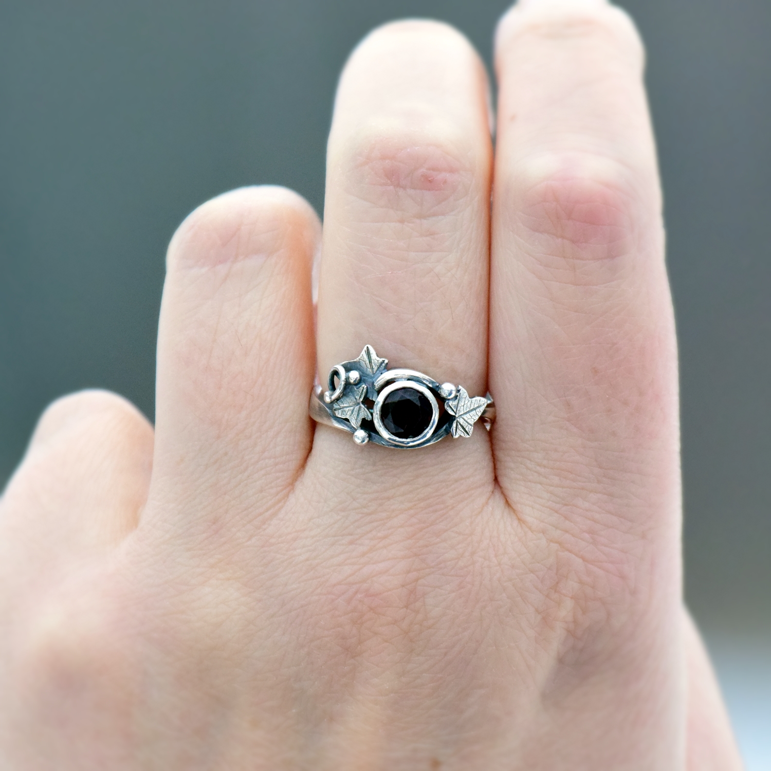 Bluszcz to roślina kojarzona z wiernością, wytrwałością i siłą życiową, co czyni ten pierścionek idealnym symbolem trwałej więzi lub osobistej drogi.
