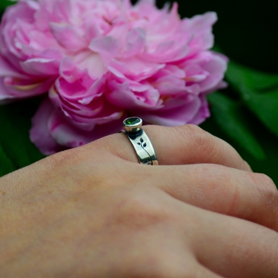 Pierścionek z Roślinnym Deseniem i Diopsydem