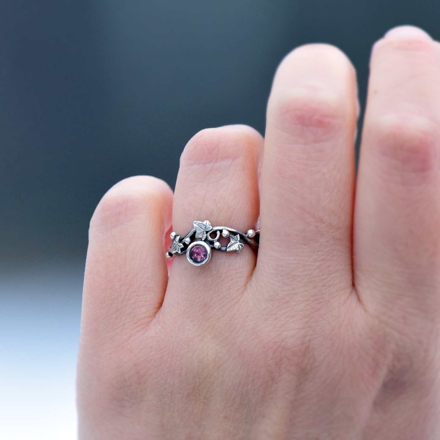 Leśny Pierścionek z Bluszczem i Turmalinem
