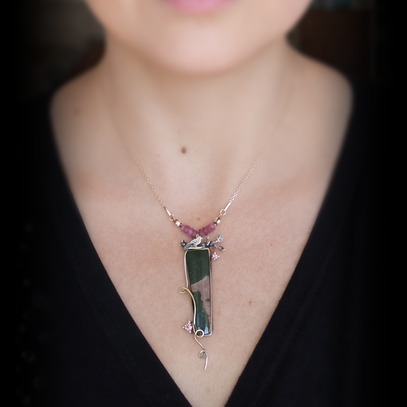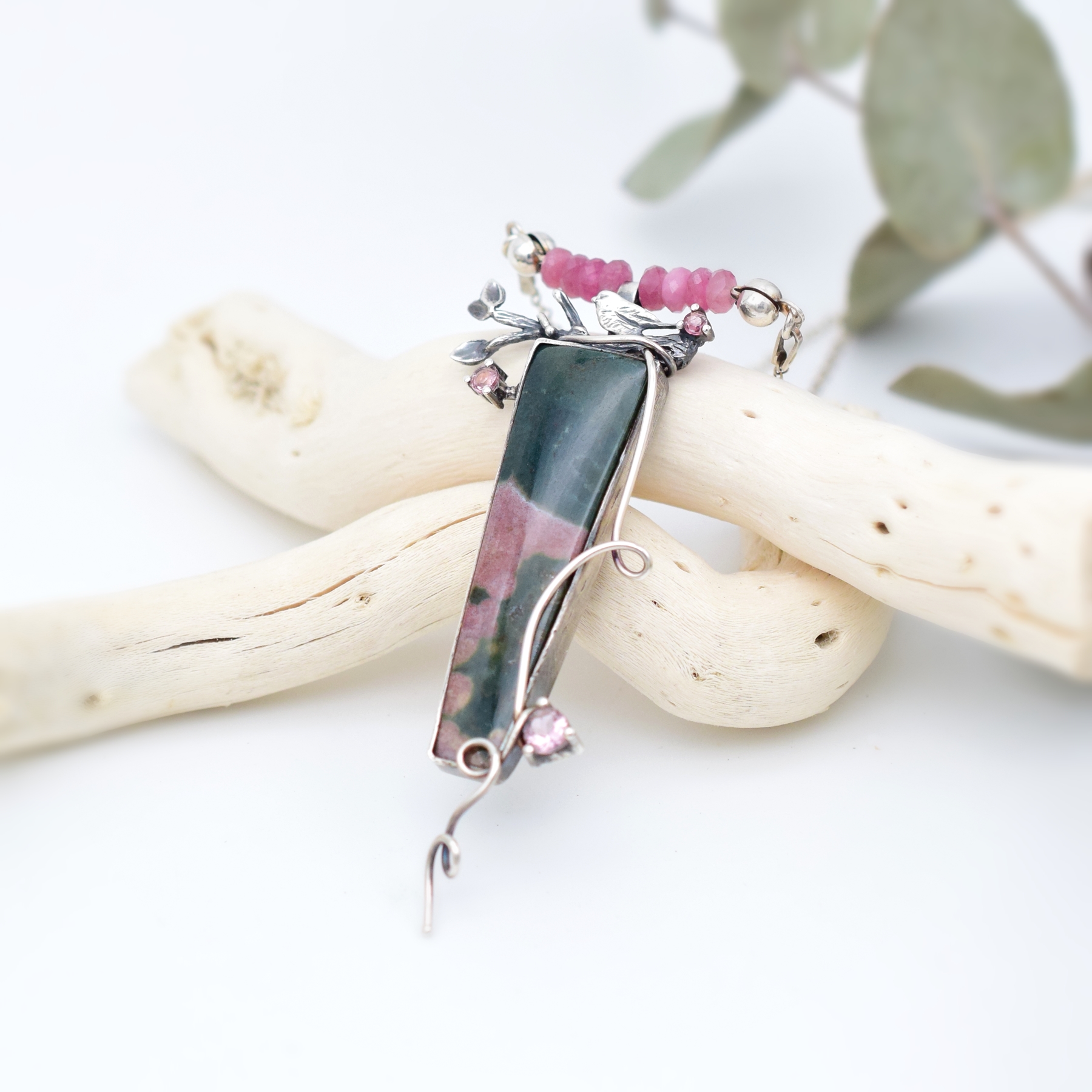 Srebrny Wisiorek z Jaspisem Oceanicznym i Ptaszkiem