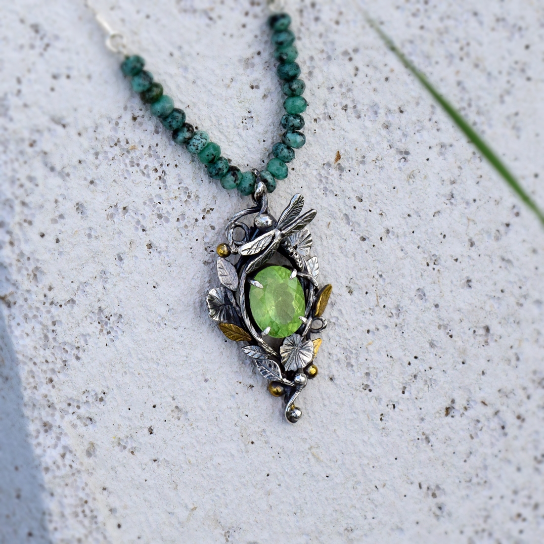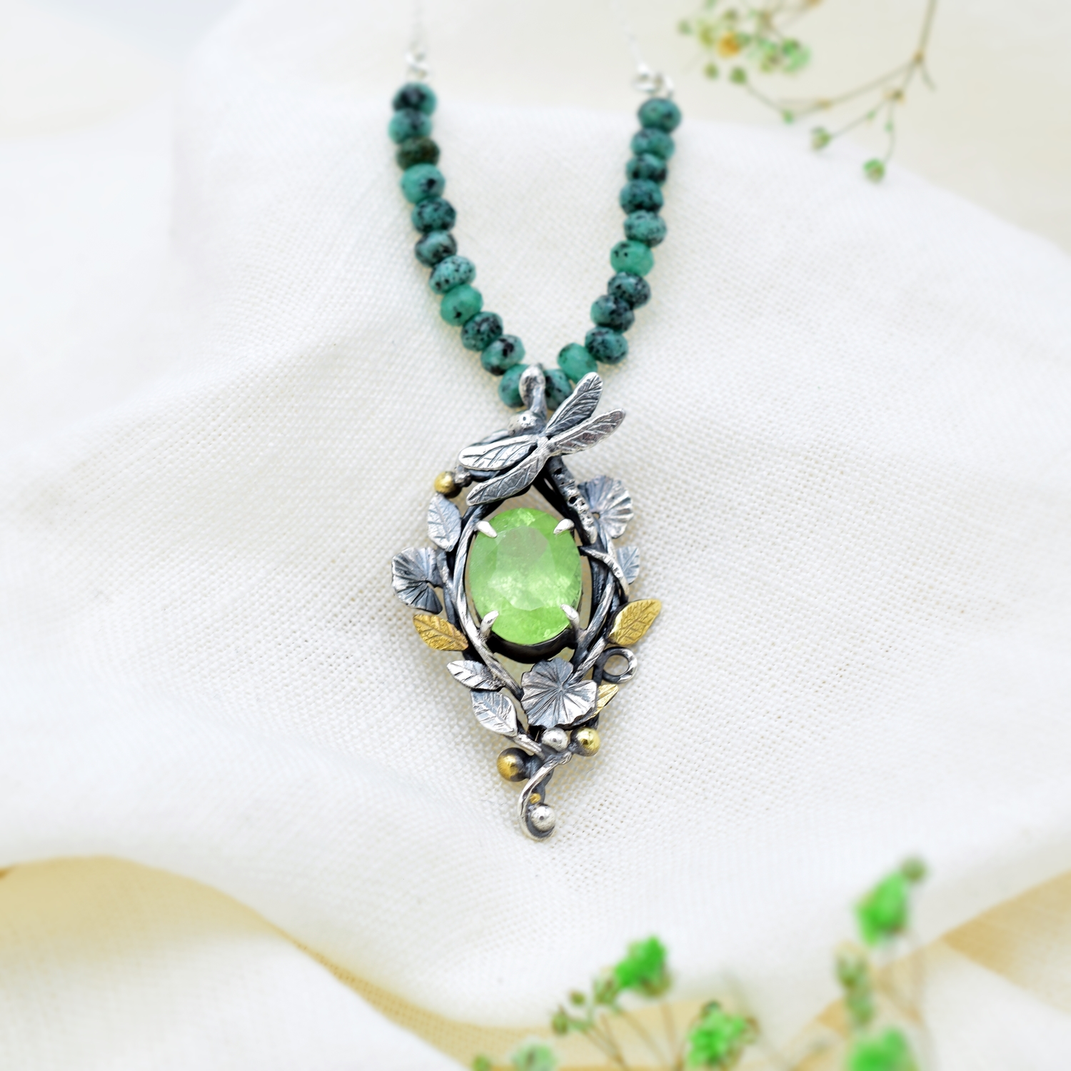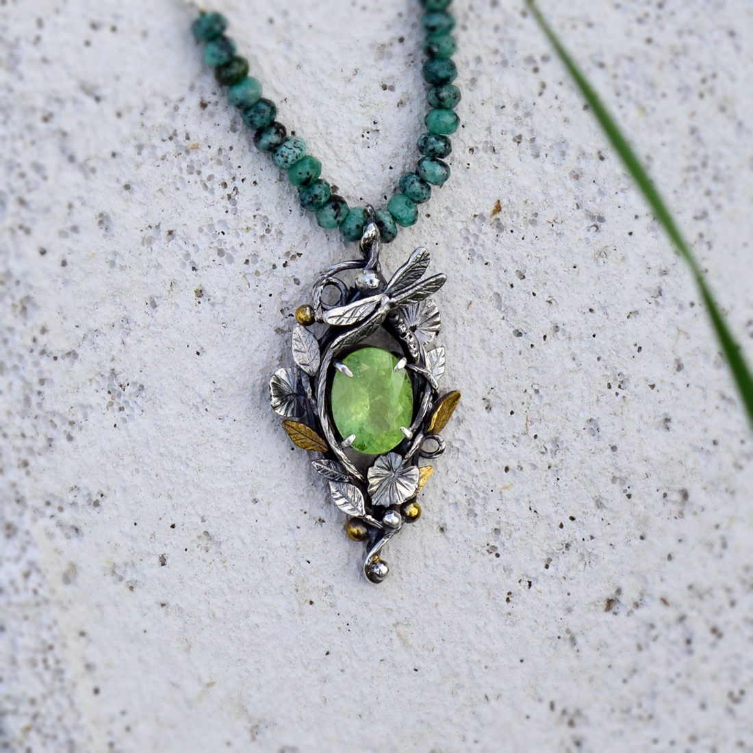 Srebrny Naszyjnik z Ważką i Oliwinem