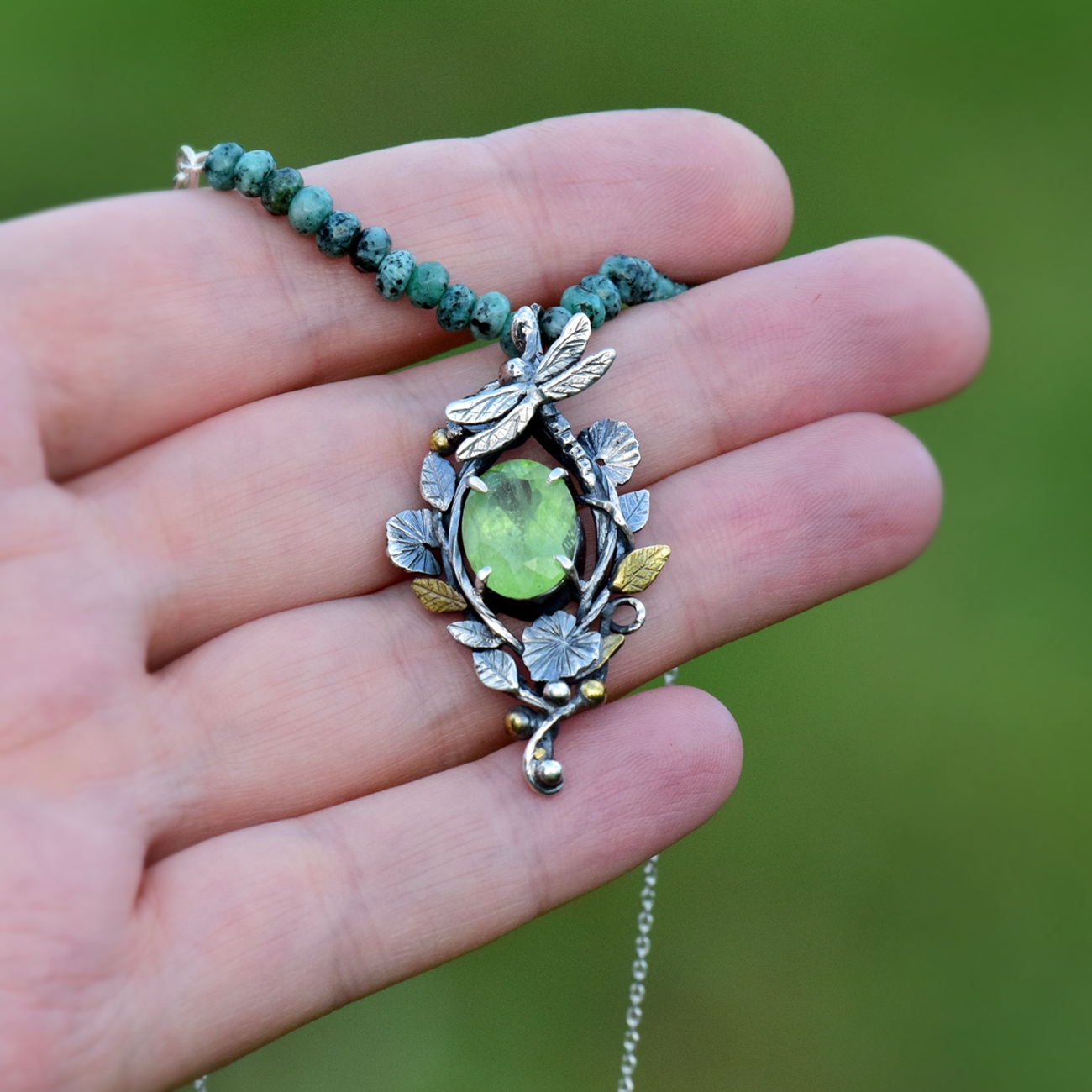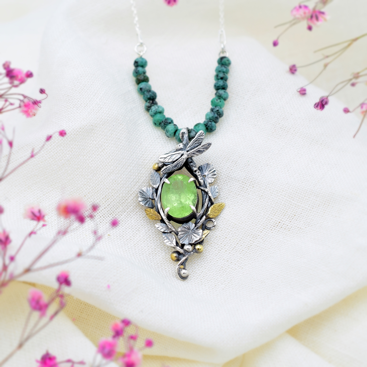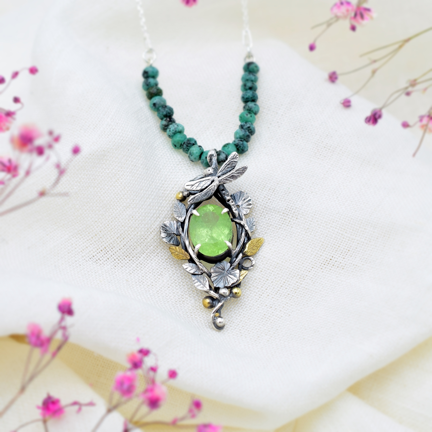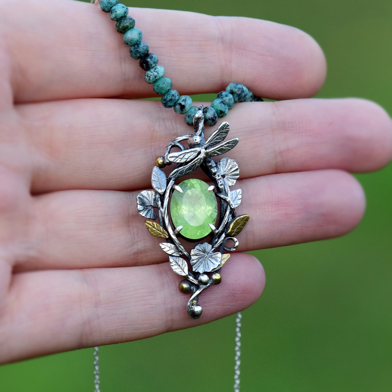 Srebrny Naszyjnik z Ważką i Oliwinem